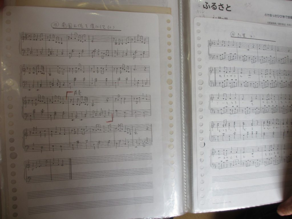 楽譜は、若葉が丘で代々使われている歌集を元として、手書きで書き起こして下さっています。