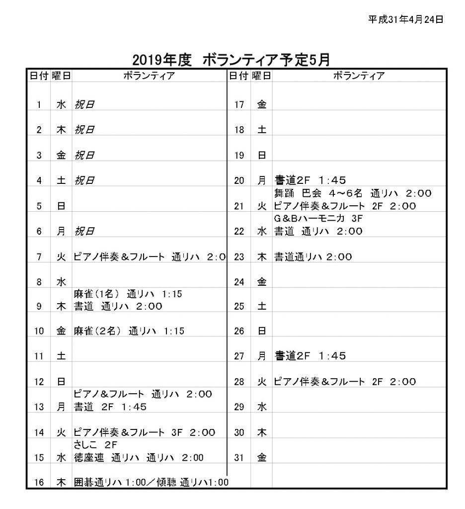 ~5月ボランティア予定~