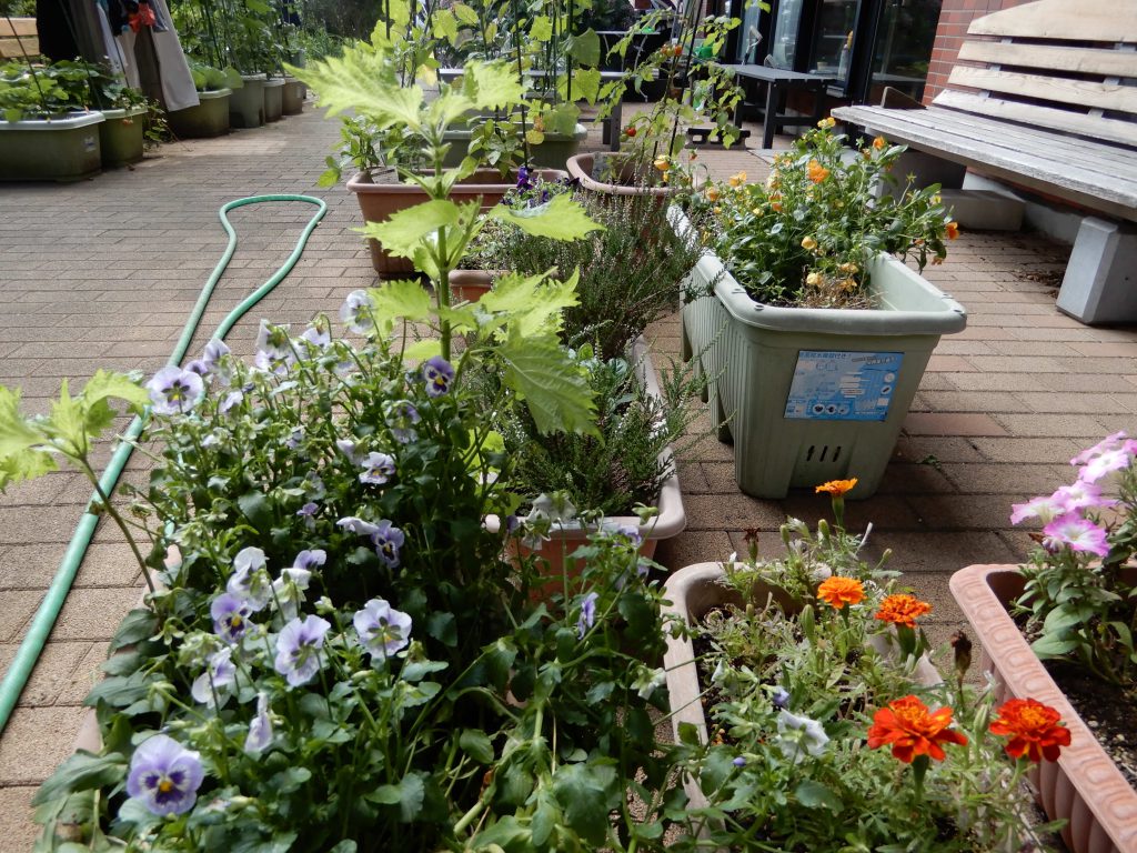 中庭を利用して、季節ごとに利用者様と一緒に野菜を育てています。