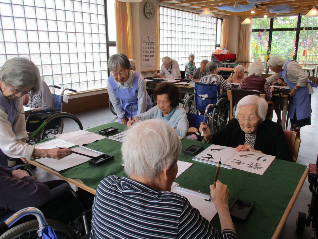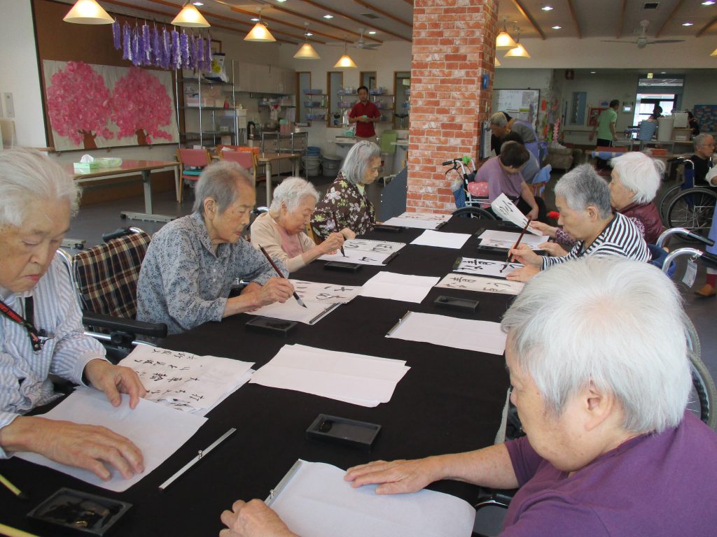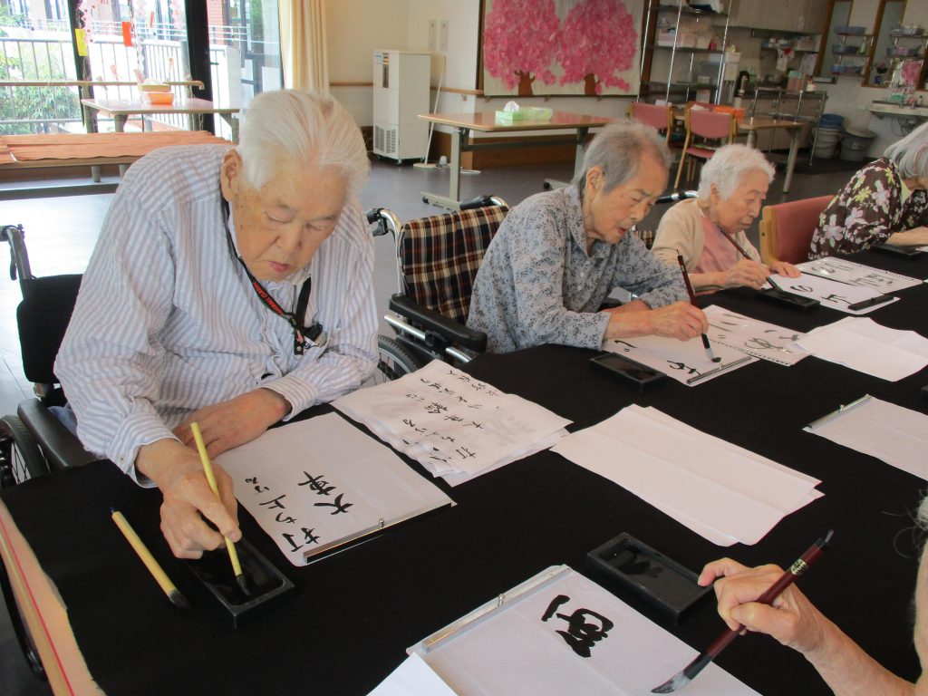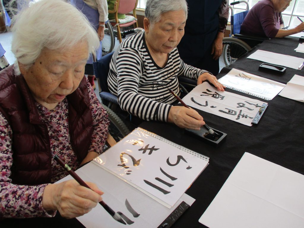 ボランティアさんのご指導の元、書道を楽しんでいます。