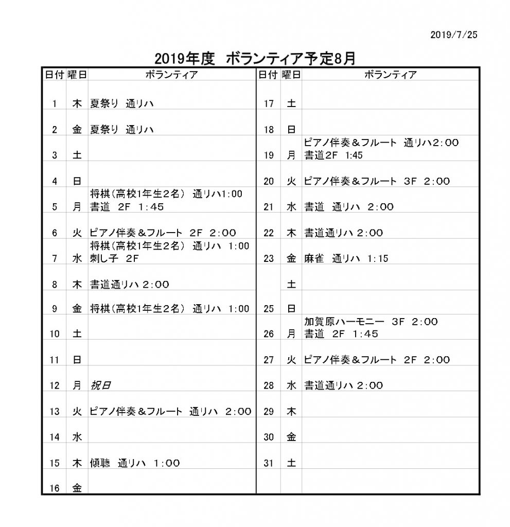 さて、遅ればせながら、今月のボランティアさんの予定です。
