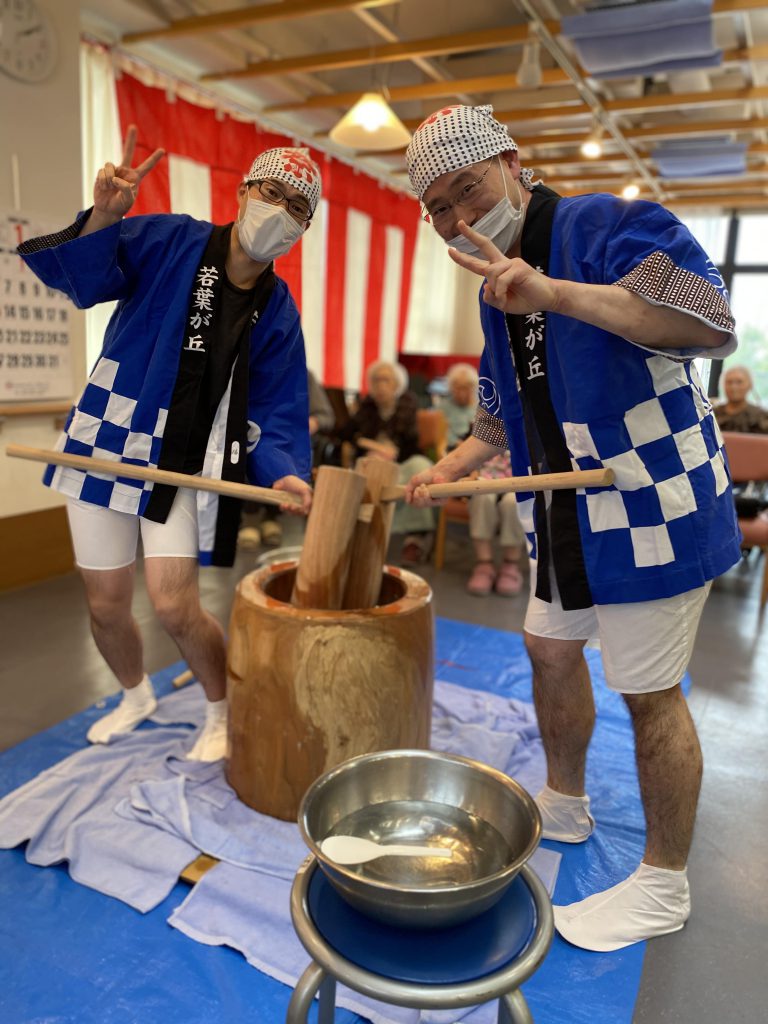 お祭り大好き若葉が丘では、おもちつきを行いました!