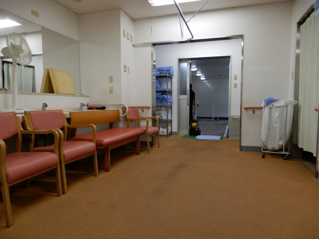 脱衣室では空調設備があり室内温度も管理され、入浴日に体温や血圧測定など体調確認をしています。