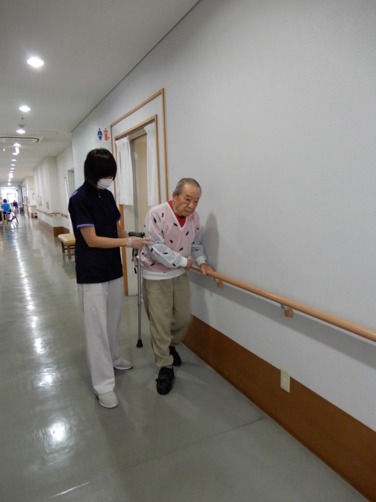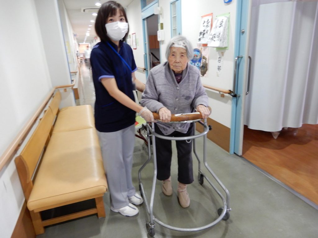 100歳を超えた方も歩行器を使って歩く機会を作っています。