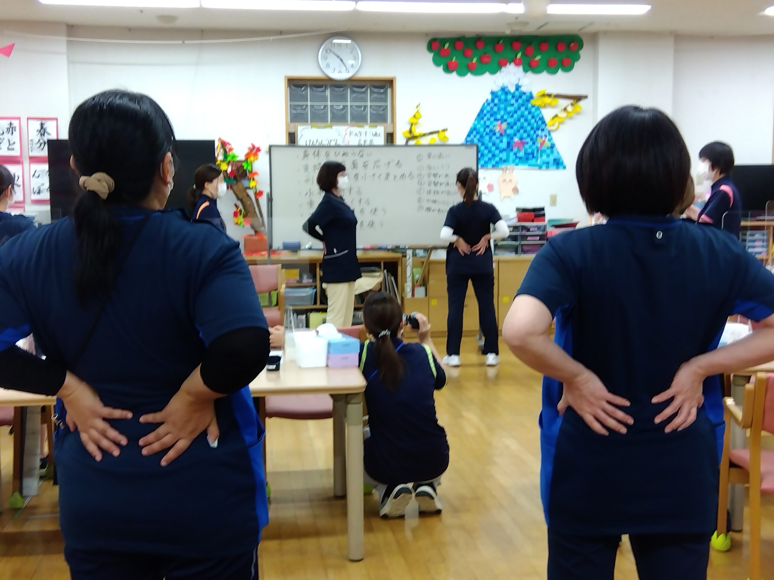 腰痛が出そうな時や痛みを感じる時に行える腰痛体操は、皆で一緒に行ってみました。実際に体を動かすと理解して覚えやすく、仕事の合間に試してみようと思いました!