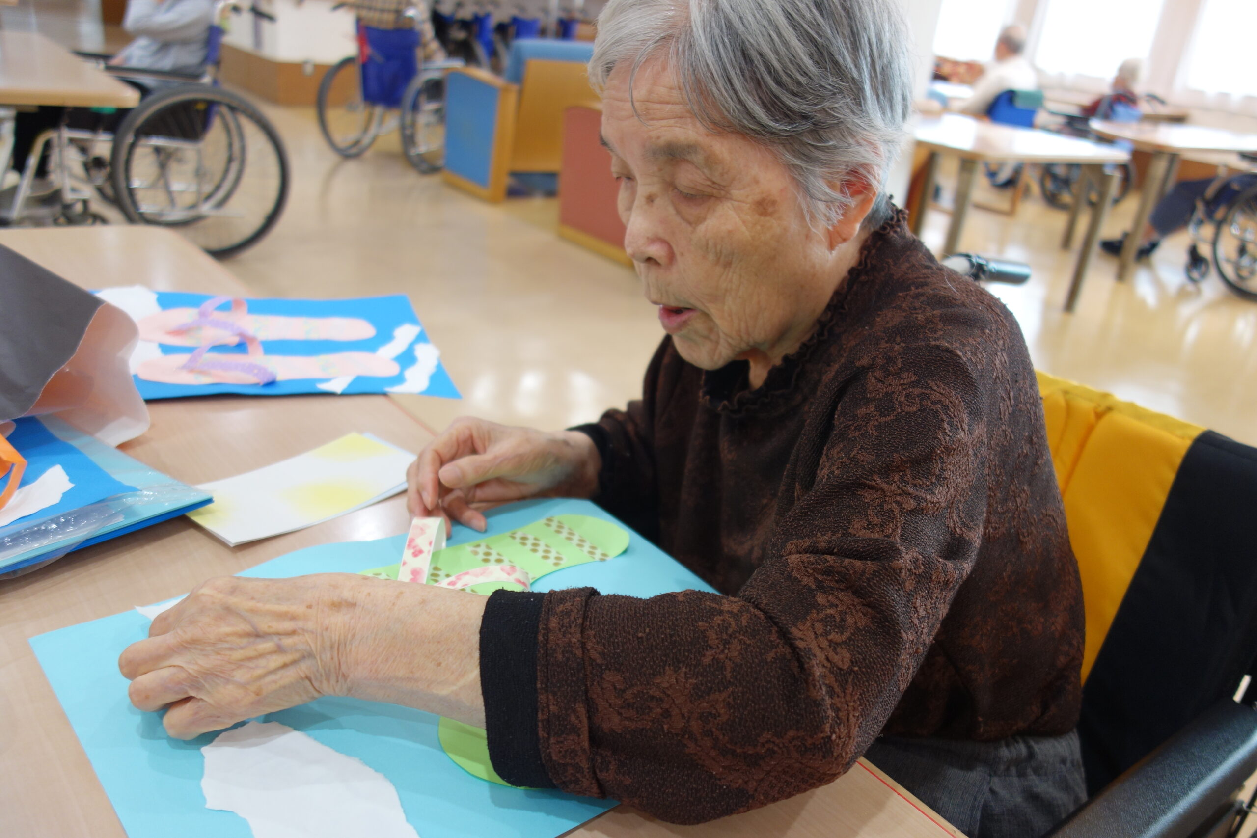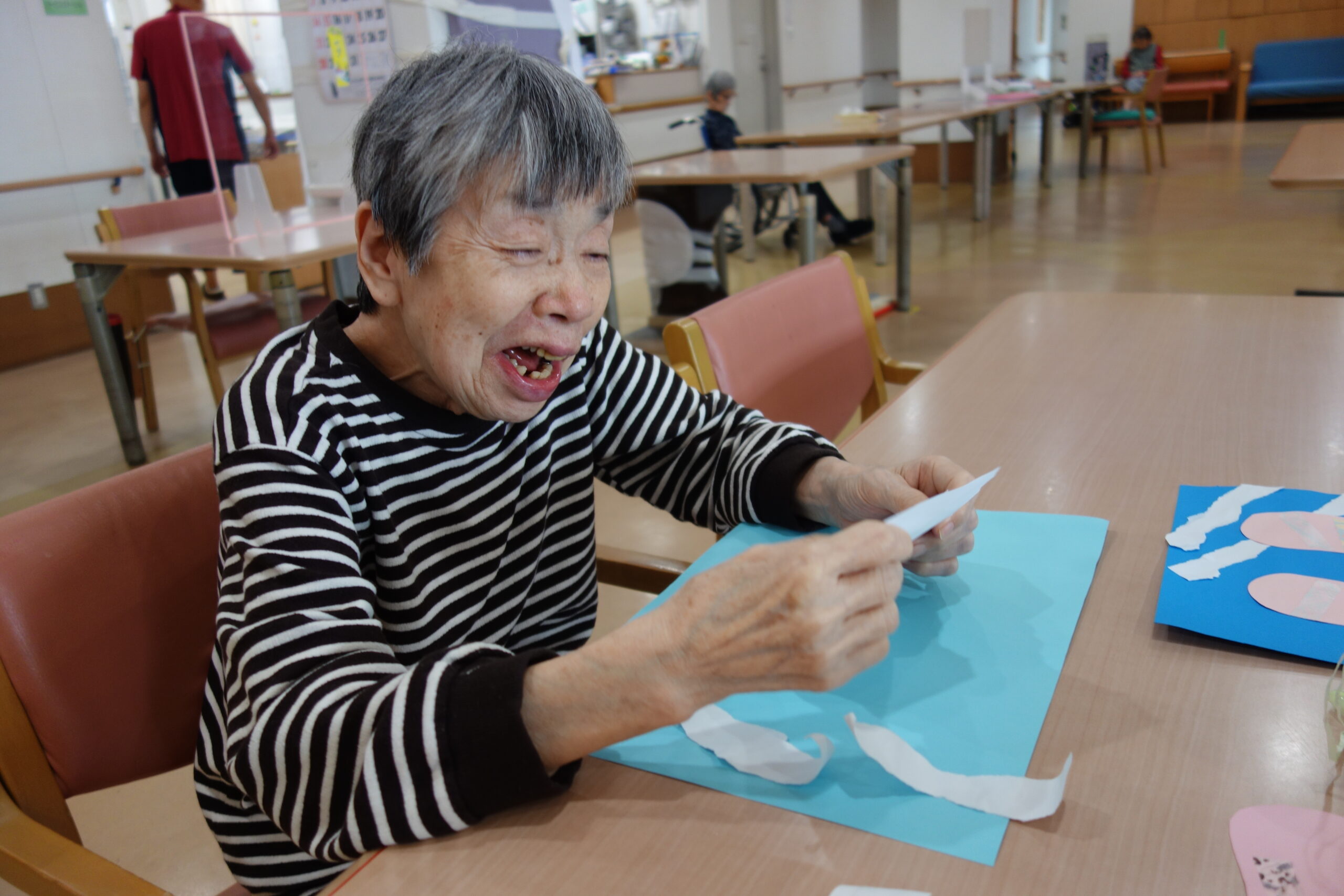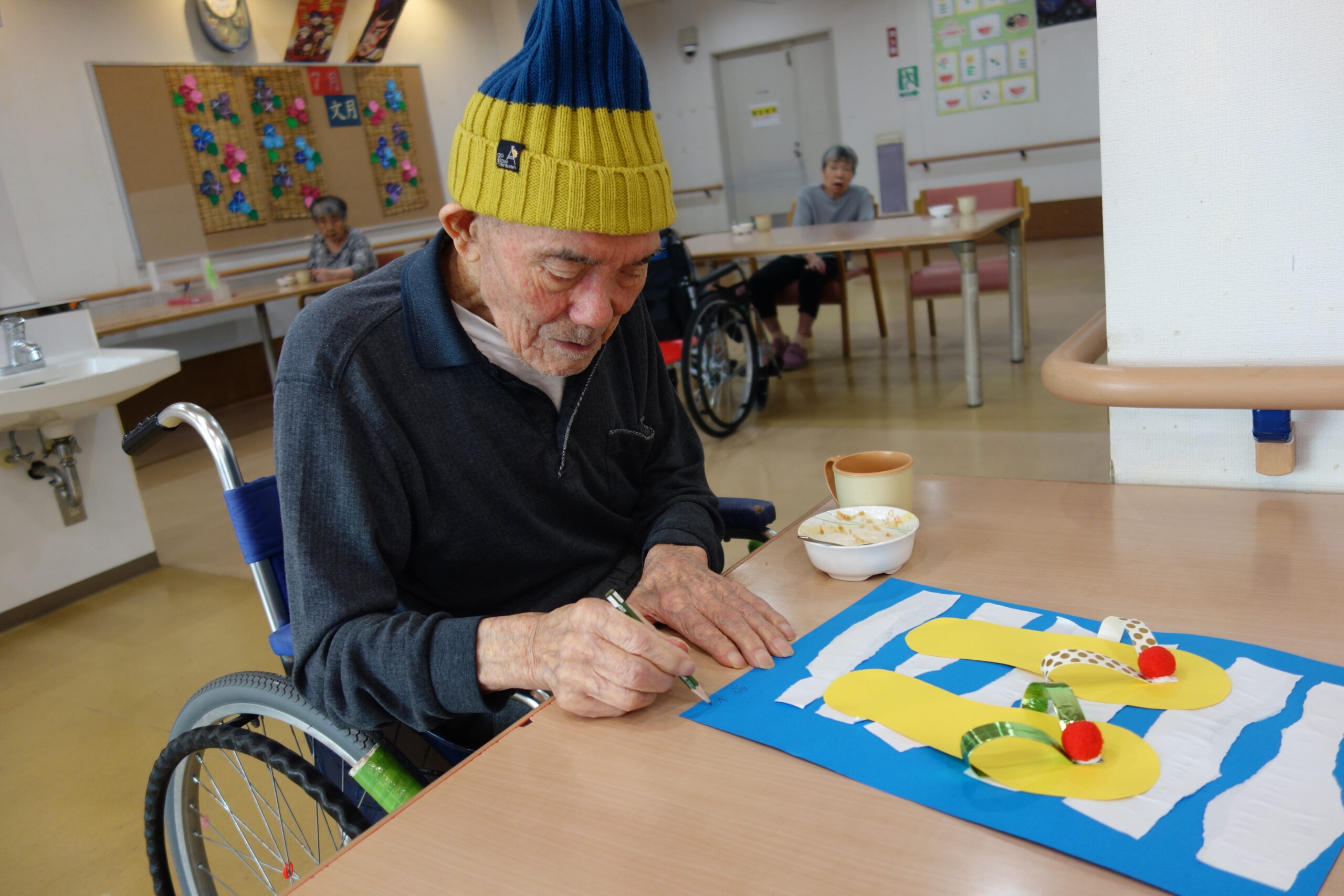 若葉が丘では入所中も夏を感じてもらえたらとご利用者様とサンダル飾りの製作を行いました。