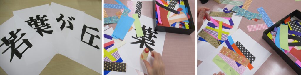 プリントした文字の上に、色紙や柄紙を好きなように配置して、貼り付けます。