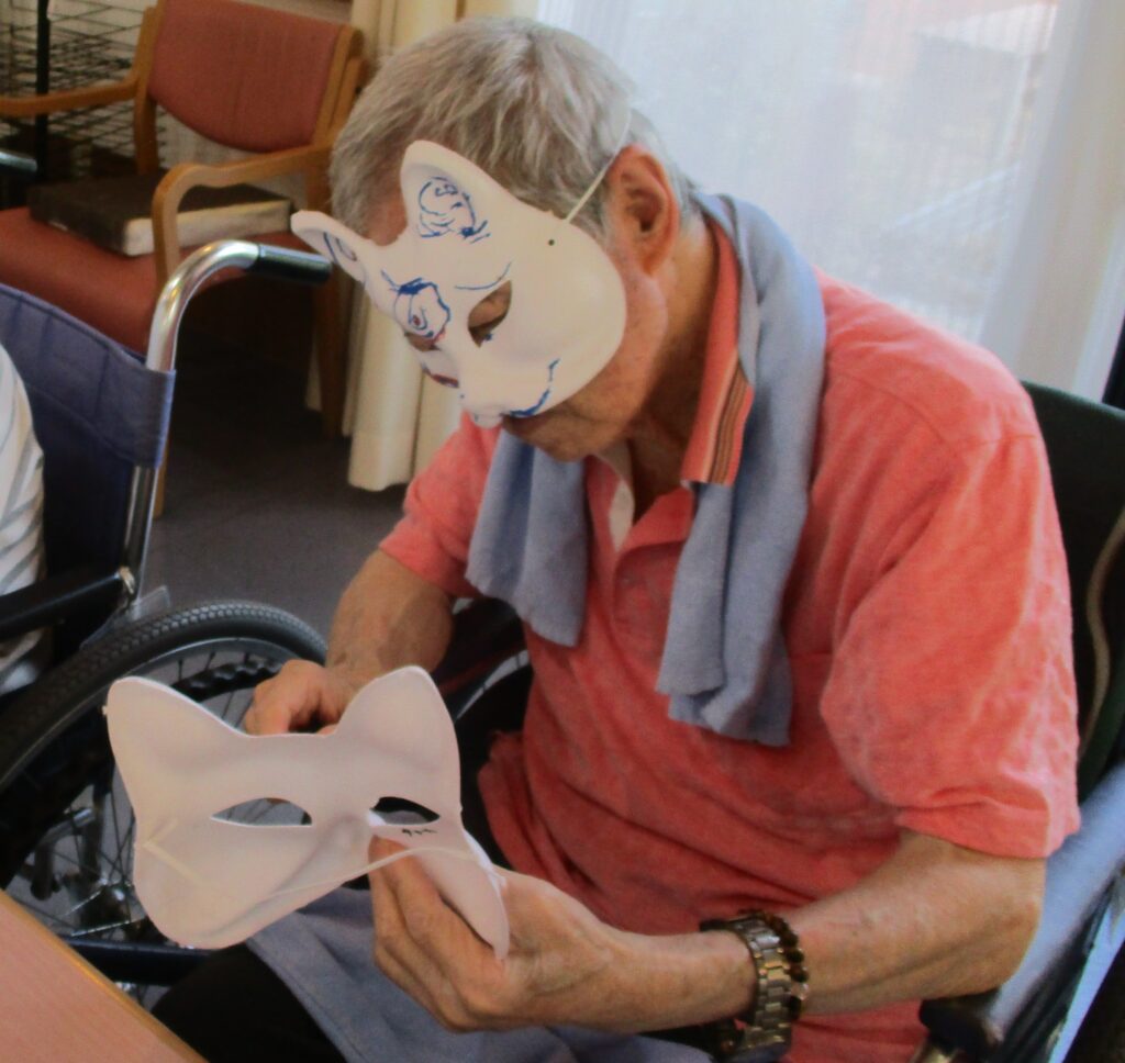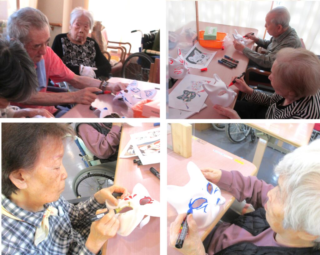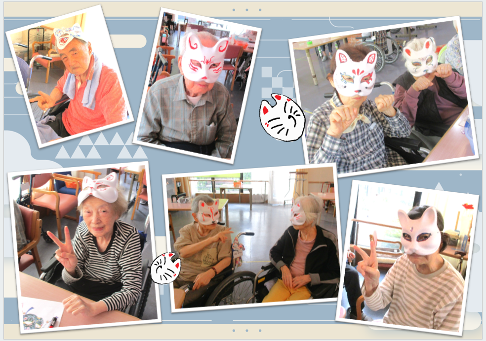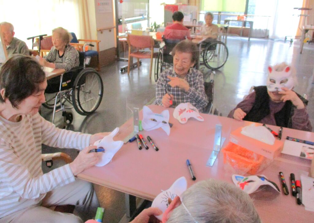 季節はもう秋。ハロウィンに向けてお面を作ろうという話になり、さっそく皆様でチャレンジして頂きました。