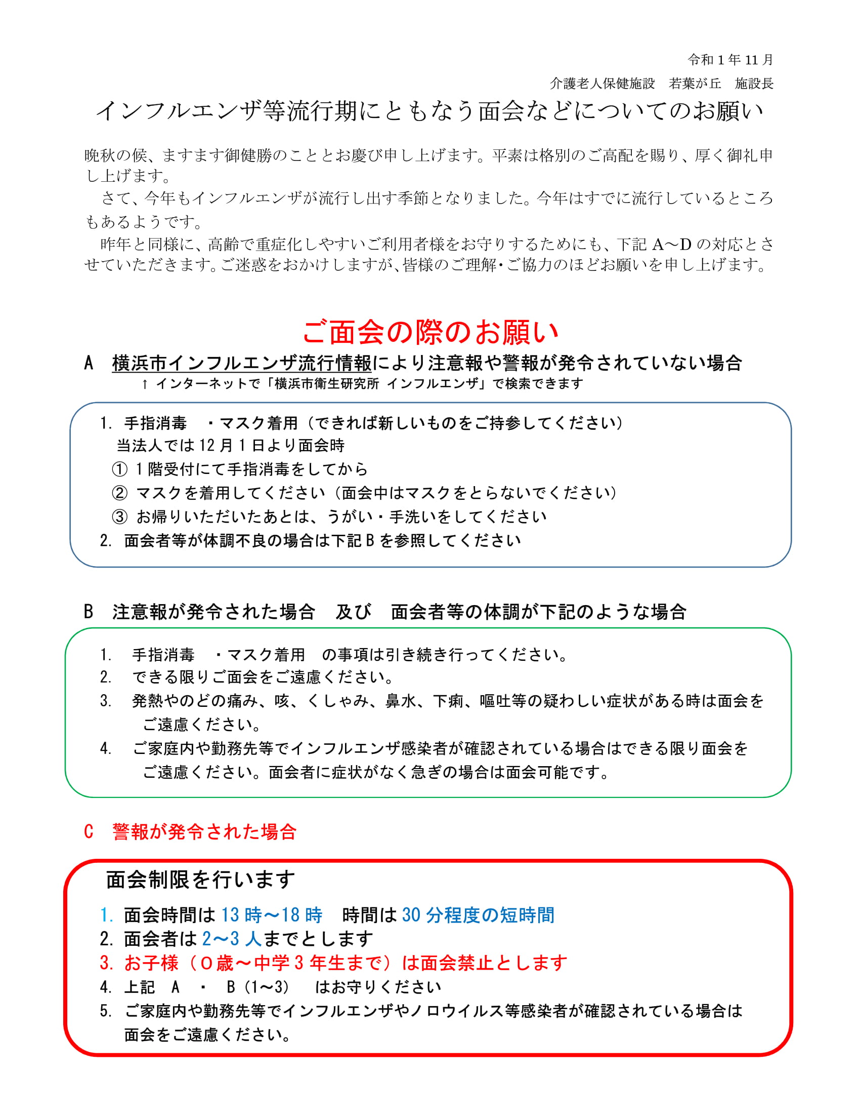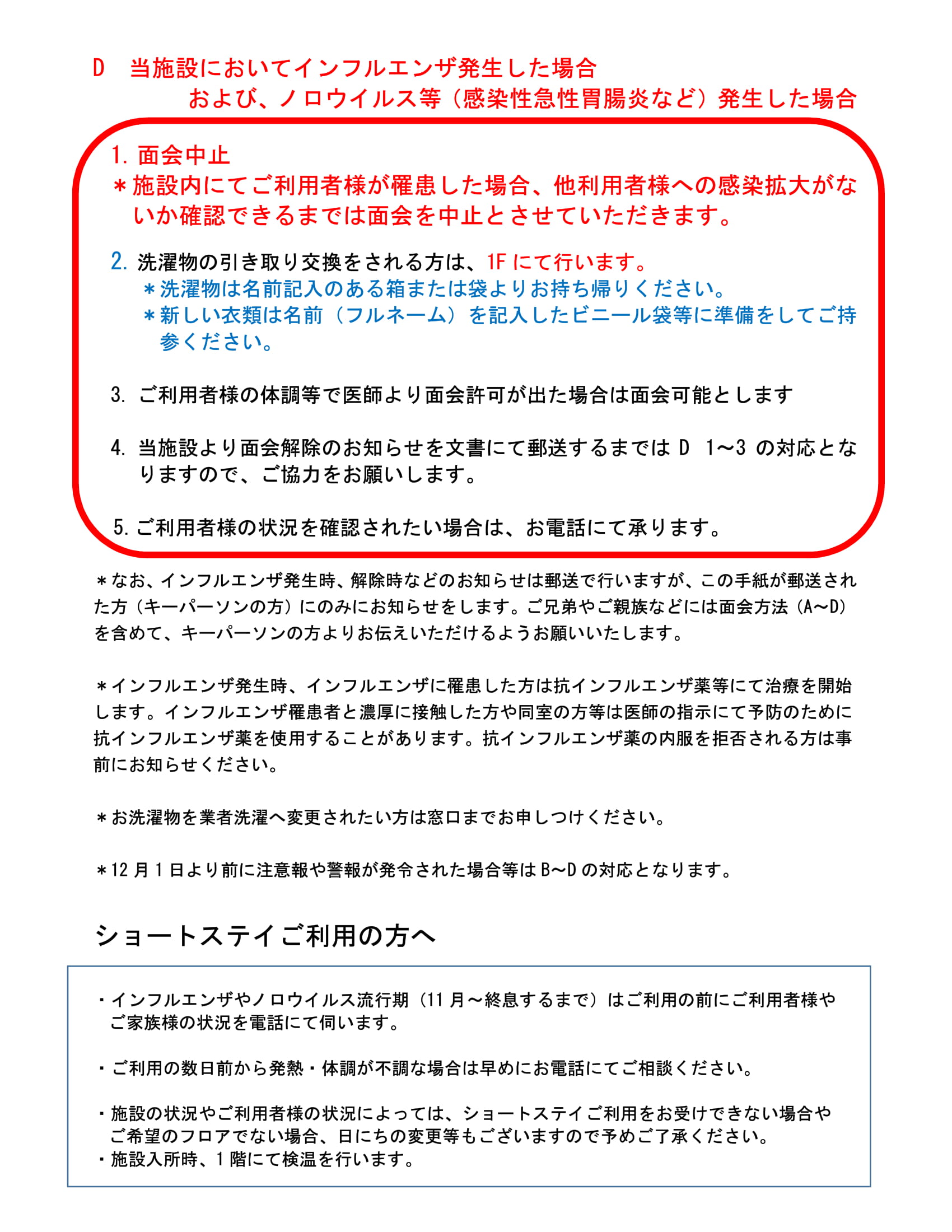 インフルエンザ等流行期にともなうお願い