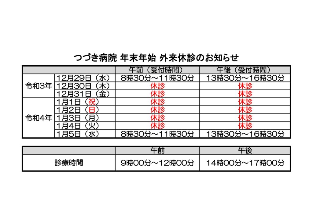 年末年始の外来診療は、12月29日(水)までが通常診療、