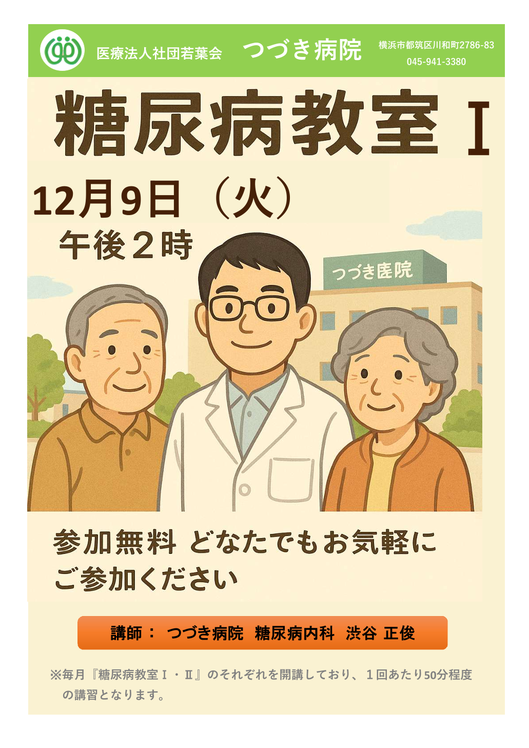 12月9日(火)【無料・予約不要】糖尿病教室のお知らせ