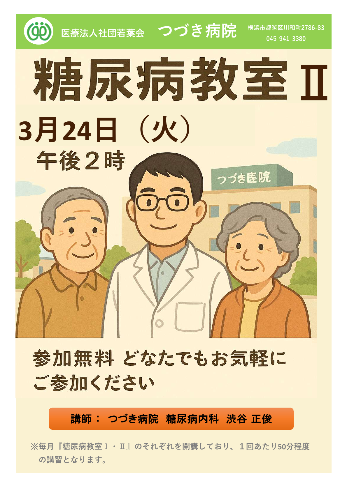 みなさまの健康をサポートするため、糖尿病内科医 渋谷医師による糖尿病教室を開催いたします。